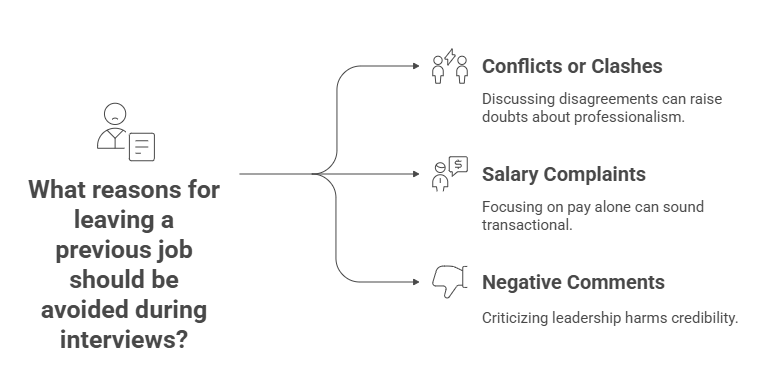 Now, there are a few answers that sound honest… but may end up hurting your chances. Some topics make you look emotional, difficult to work with, or focused on the wrong things.