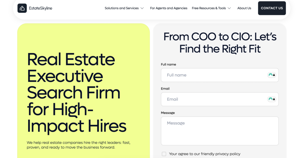 - Estate Skyline: Real estate–focused recruitment firm with global reach and industry-trained executive support talent.