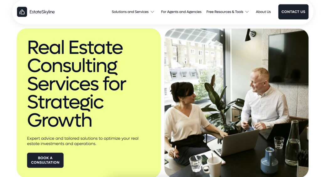 Estate Skyline is a real estate consulting firm that understands the biggest challenges property professionals face online: from low website traffic to struggling with Google rankings and weak lead generation.
